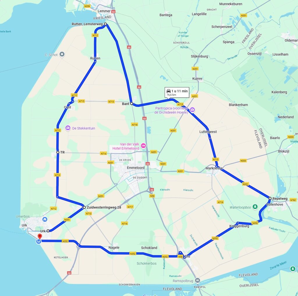 De route door de polder is als volgt: