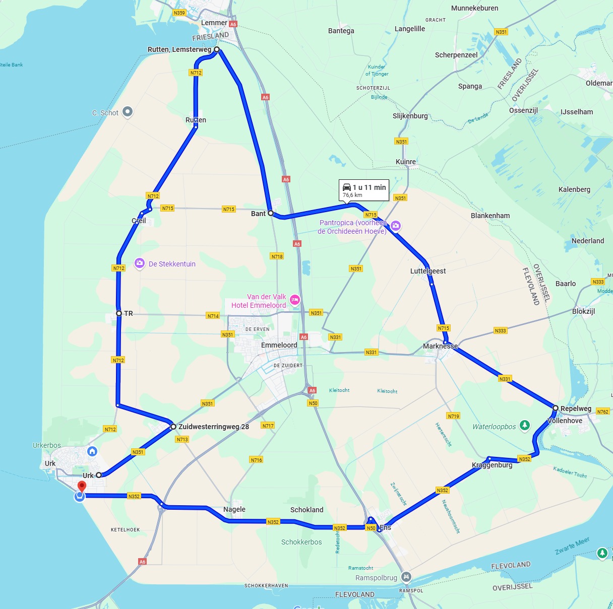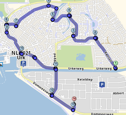 De route door Urk is als volgt: